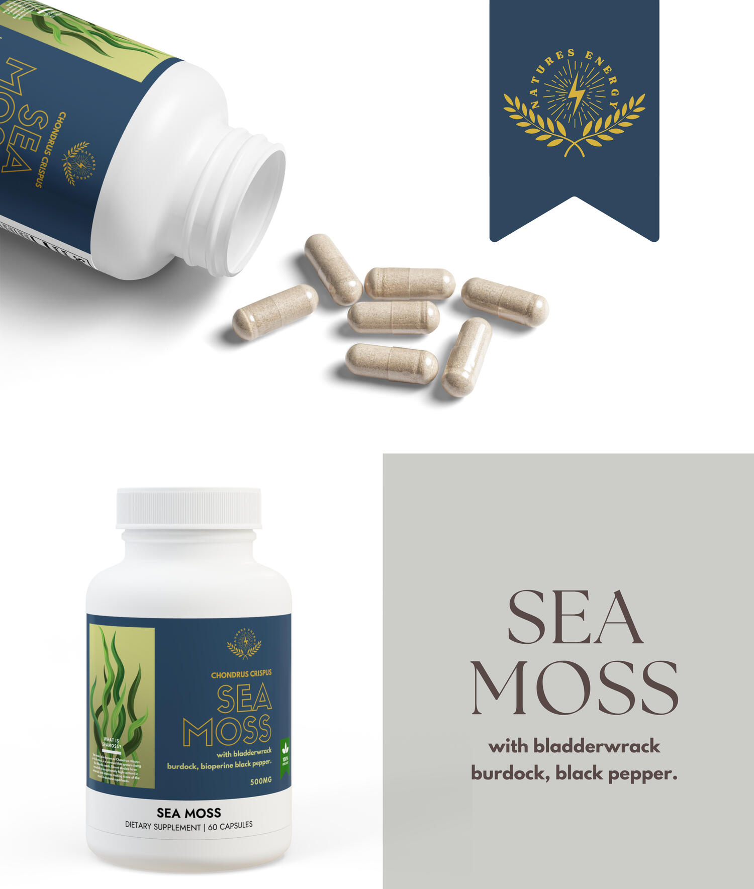 Try Energia’s Sea Moss Supplement is crafted to support your body with natural, nutrient-dense ingredients sourced from the sea and earth. Each capsule combines Chondrus Crispus Sea Moss, bladderwrack, burdock root, and black pepper extract to enhance absorption and maximize benefits. This powerful blend delivers essential minerals, supports immune function, promotes healthy digestion, and helps maintain natural energy levels. Clean, pure, and formulated for daily wellness, Sea Moss provides a simple way to nourish your body with nature’s most trusted ingredients.Key Benefits: